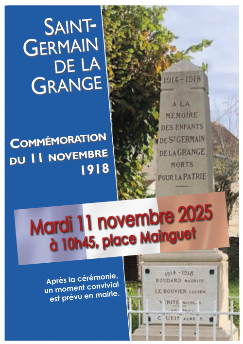 La cérémonie commémorative du 11 novembre 1918 se tiendra au Monument aux Morts - Place Mainguet à 10h45 en partenariat avec la section locale de l'Union Nationale des Combattants (UNC).