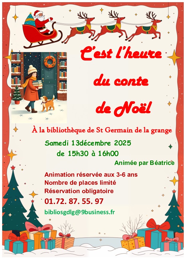 Heure du Conte de Noël animé par Béatrice le samedi 13 décembre de 15h30 à 16h à la Bibliothèque.
